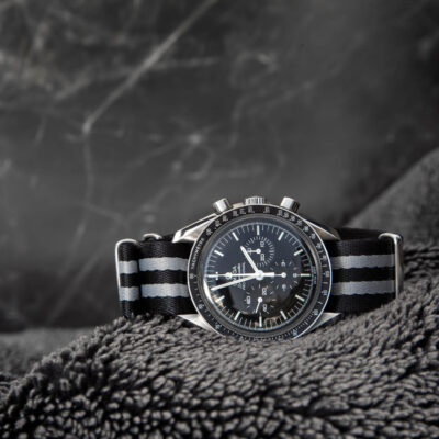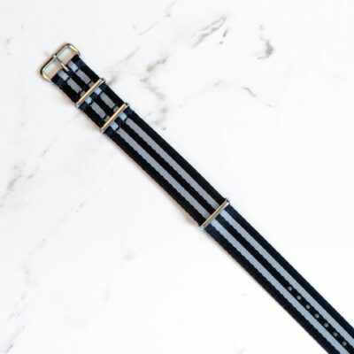 Herringbone Seatbelt NATO Strap in Black and Grey