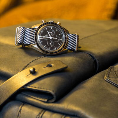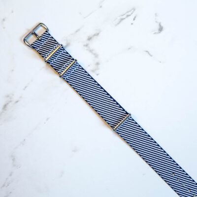 Give your watch a new look harking back to the glory days of Le Man, this is a striking orange and sky blue striped strap. easy to swap around and sure to get attention.